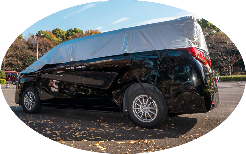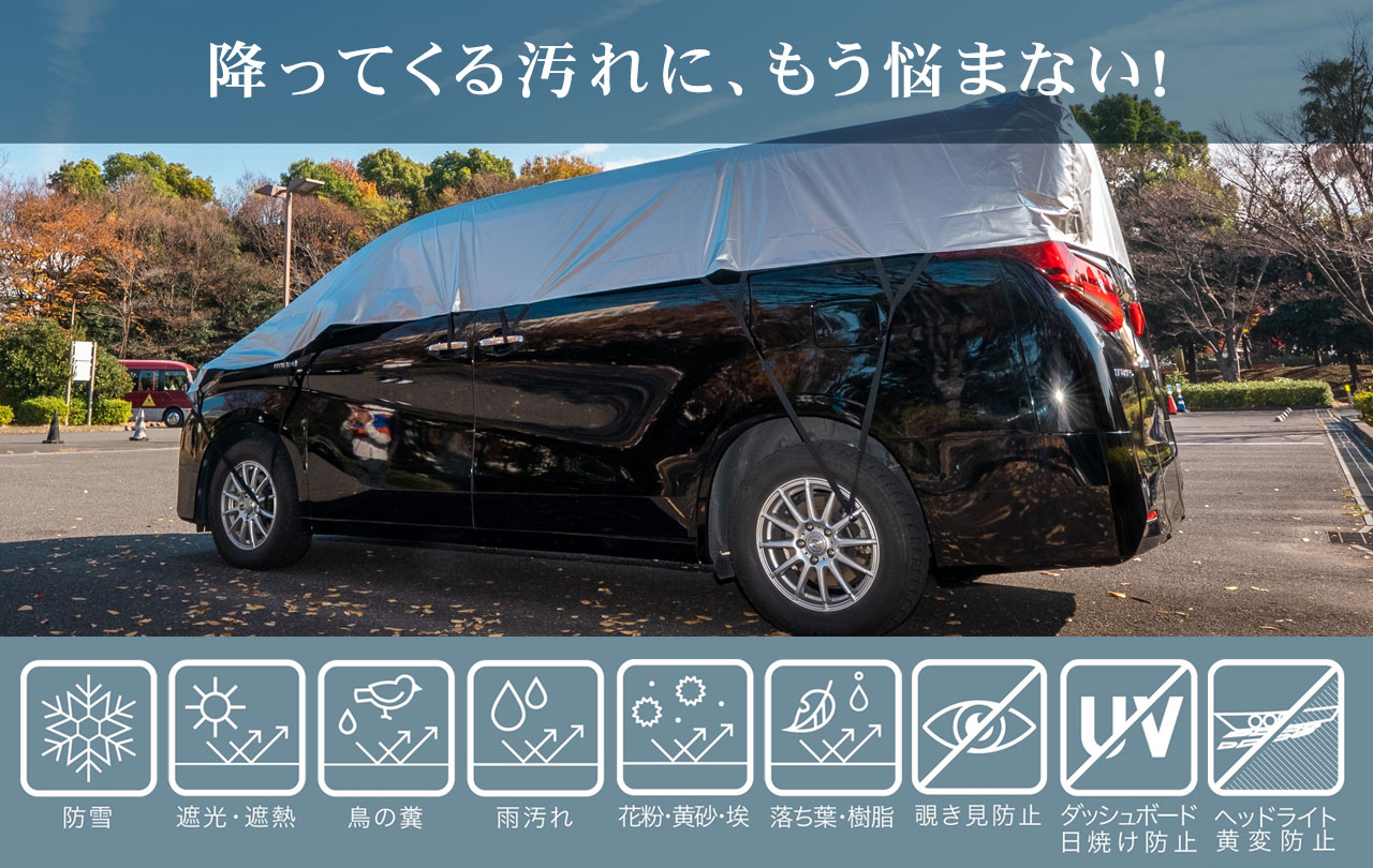 ハーフカバーは車体上部のみを覆い、日よけ・汚れ防止・雪落ちの軽減に最適です。