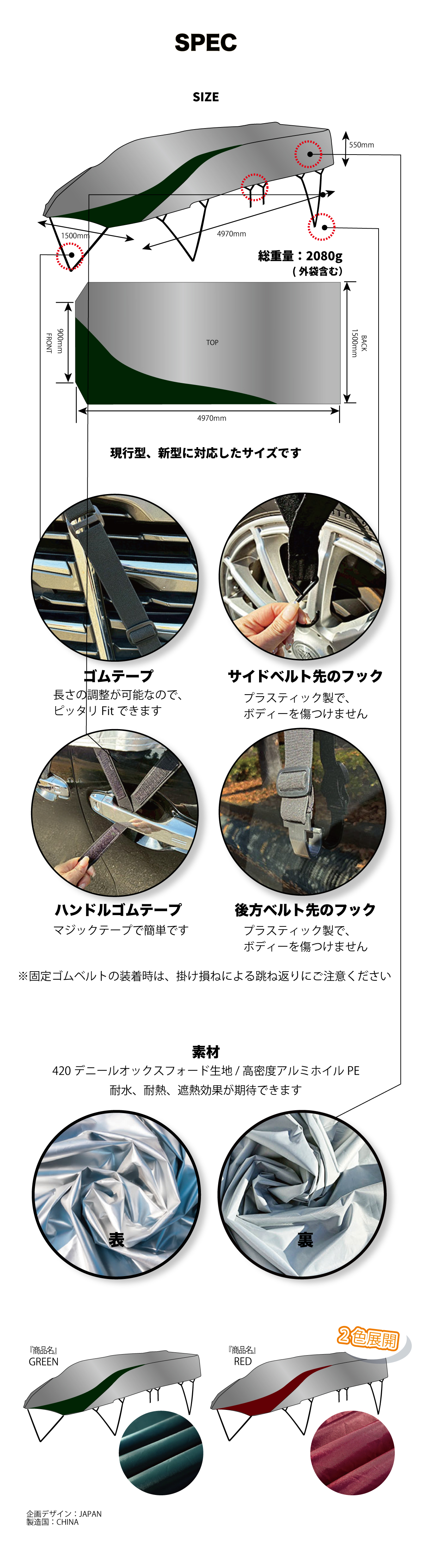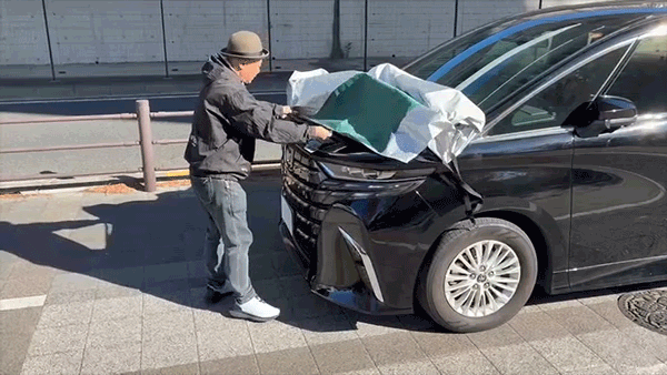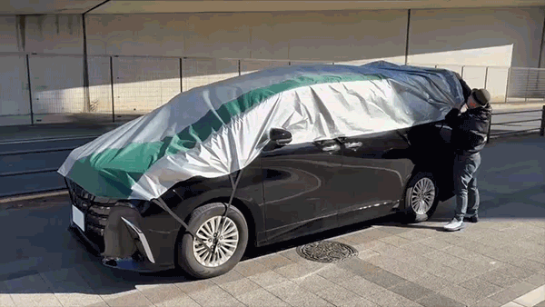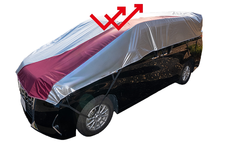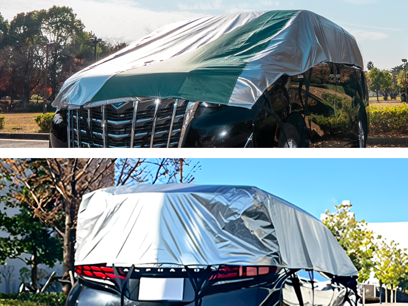 撥水・防水加工を施しており、雨・霜・雪から車を保護します。ただし、長時間濡れたまま放置すると湿気がこもる場合がありますので、晴れた日に乾燥させてください。
