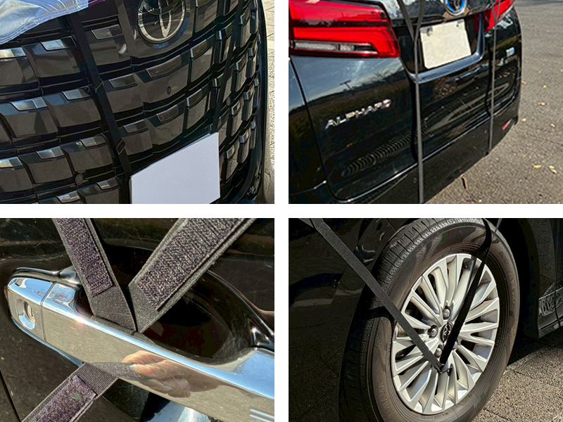 前後左右の4面を隙間なくしっかりと密着させ、強風からもしっかりとボディをまもります!
