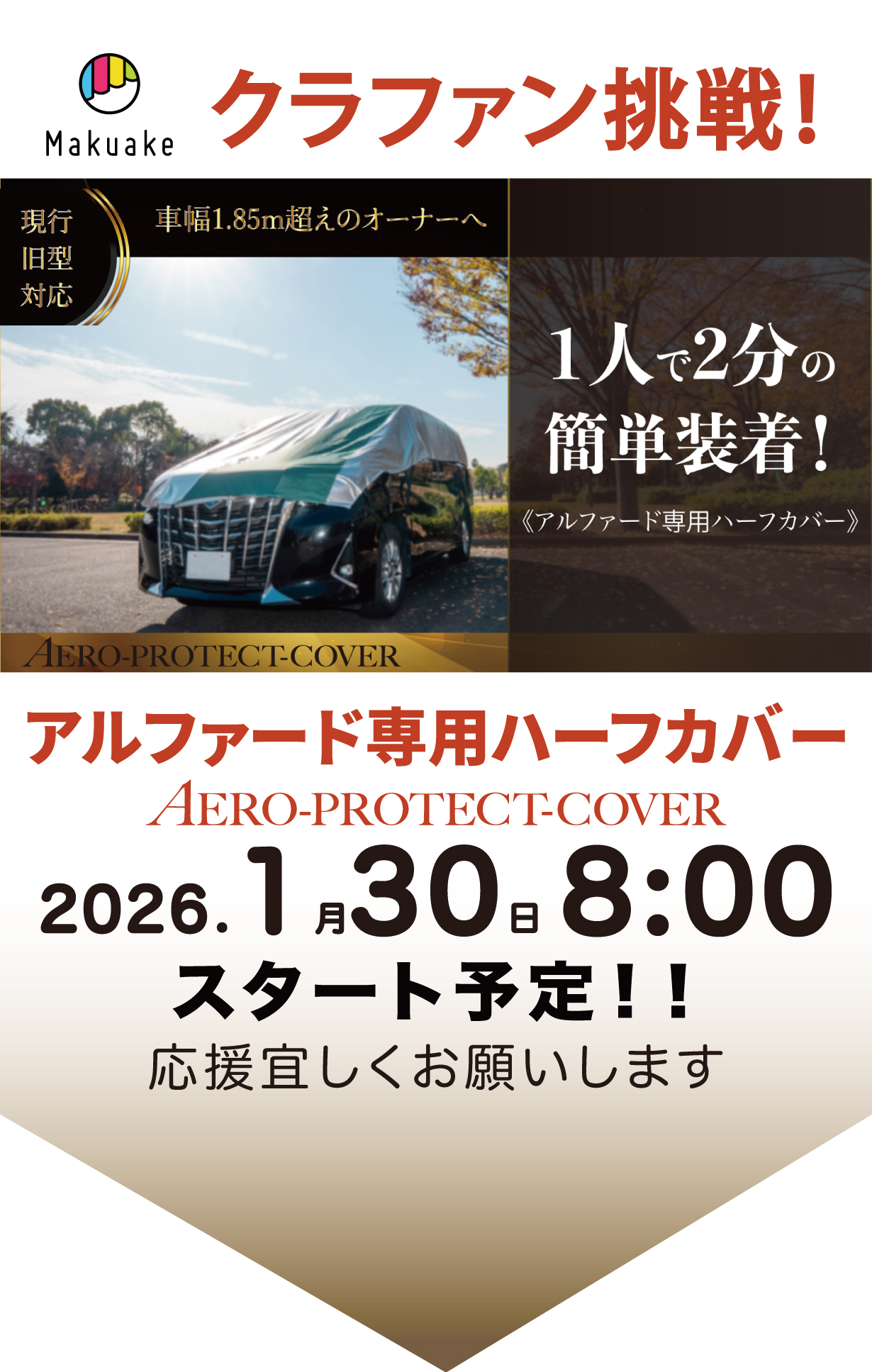 アルファード / ヴェルファイアを基準に設計された専用カバーですが、車体サイズ・形状が非常に近い車種につきましては条件により装着が可能な場合があります。